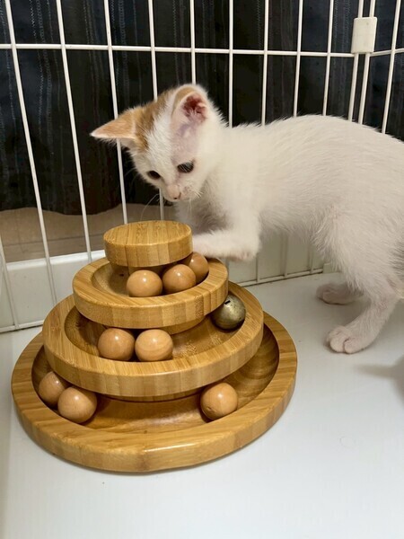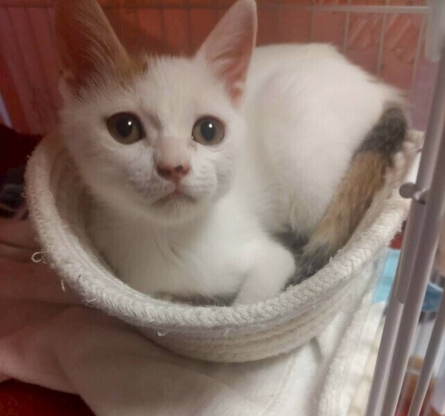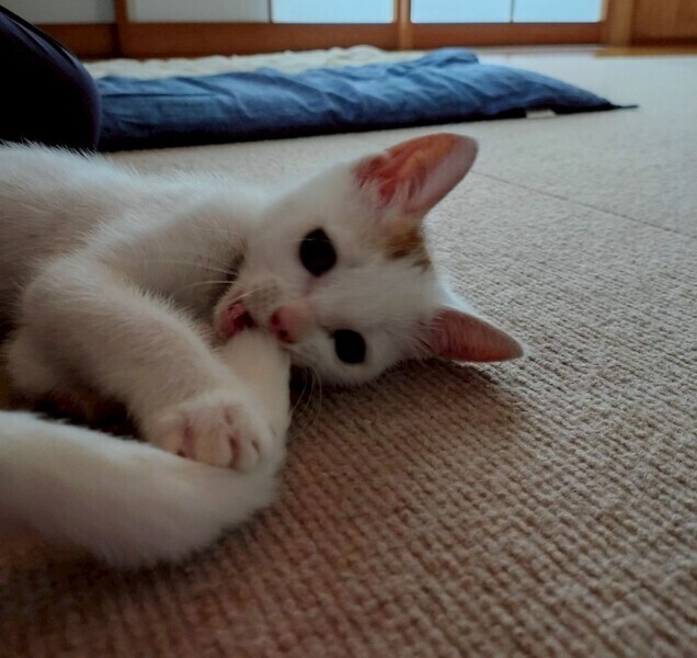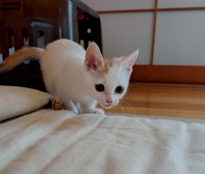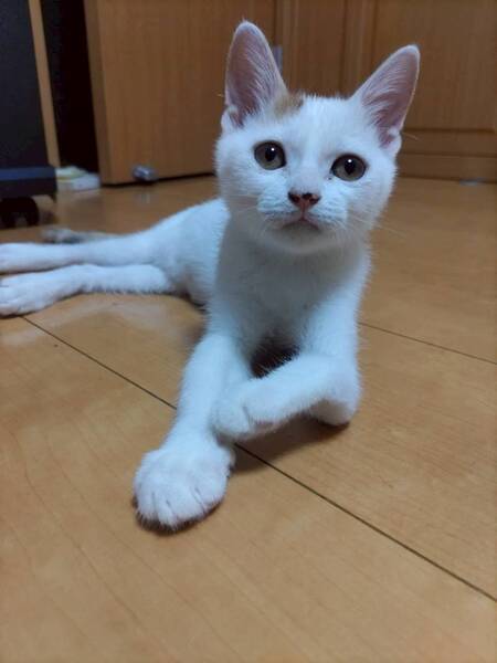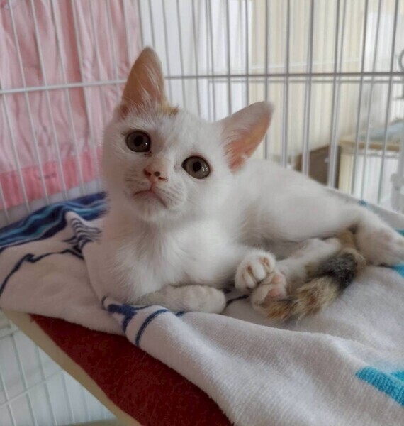 | 特徴(性格など) | 2025.7.1生まれ(推定) 毛色:三毛 子猫らしく毎日元気いっぱい走り回っています。 小さい体ながらも同じ預かりボランティア宅にいる ゆり を追いかけたり、 ニャンプロしかけたりと、ちょっと強気な一面も。 左前足に障害がありますが、日々の生活には影響なく心配いりません! |