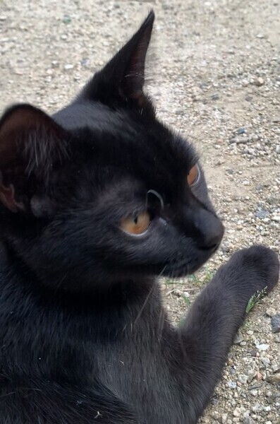 | 里親募集する理由 | 離乳時期に母猫に連れられ1ヶ月前くらいから、軒下に住み着いている状態の子猫達の里親を募集致します。先住の姉家ネコが嫌がってしまうため、室内での人慣れやケアなどしづらい状況です。が、グレインフリーのドライフードや鶏卵液、鶏肉、魚、良質なタンパク質を意識した食事を与え、人馴れもして、かまってちゃんになっています、とても元気で可愛らしい黒猫ちゃんです。 | ||
