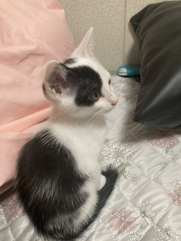 | 特徴(性格など) | 白黒 牛柄 ノミダニ駆除済み とっても優しく甘えん坊。保護当日から膝に乗ってきたり、枕元で体をピッタリくっつけて眠ります。戯れ方も絶対に痛くかんだりしません優しい良い子です。シャンプーもおとなしかったです。 |