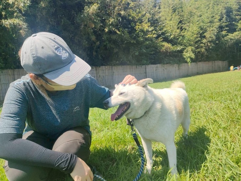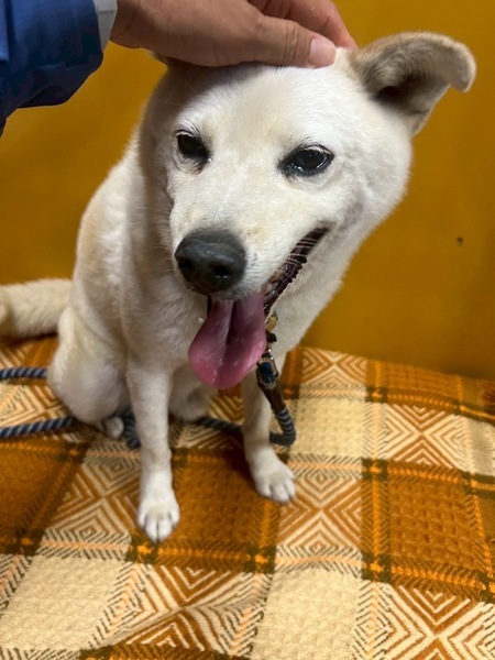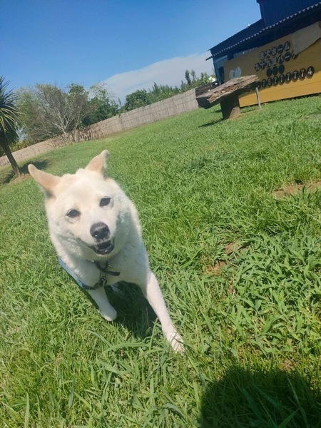 | 特徴(性格など) | 色は白地に茶色がところどころ混ざっており、柴犬くらいの大きさになります。 性格は人懐っこく、誰でも触れることができ撫でてもらうのが大好きな子です。 最初知らない人に吠えてしまうところがありますが、手を伸ばすと吠えるのをやめすぐに尻尾を振りながら近づいてくるような優しい子です。 |