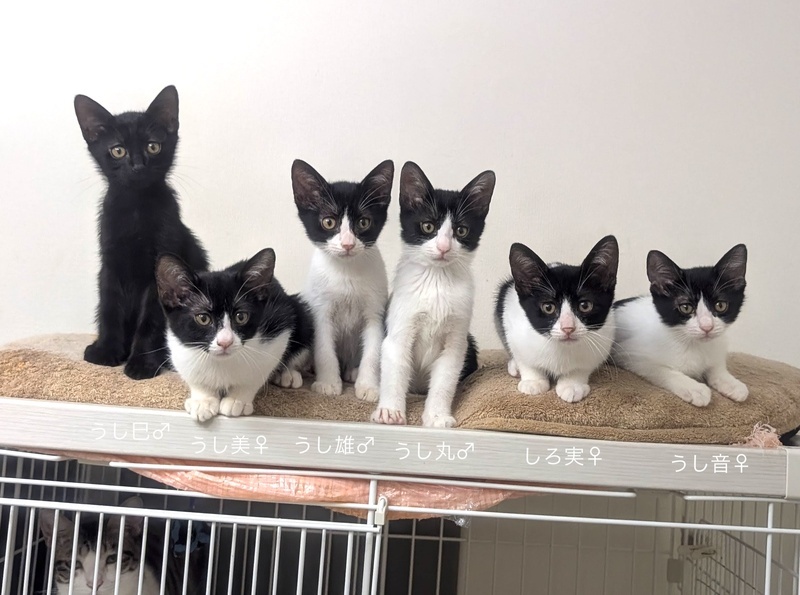 | 特徴(性格など) | 月14日(日)12:00~16:00(最終申込15:30) ねこざんまい譲渡会【東日本橋会場】に参加予定です! 会場の案内はこちら♪ https://ameblo.jp/neko3mai/entry-12807190298.html ※猫ちゃんとのお見合いは譲渡会となります。 譲渡会ご来場につきまして、事前予約は不要です。 どうぞご家族みなさまでご来場下さい♪ ★★★ご来場前に必ずご確認下さい★★★ 《里親様へお願いはこちら》 http://www.neko3mai.com/condition/condition.html 《家族募集中猫ちゃん一覧はこちら》 http://www.neko3mai.com/entrycats/entrycats.html ◆ 名 前 ◆ うし音ちゃん ◆ 年齢 ◆ 3ヶ月弱(2025.6.22頃生) ◆ 性別 ◆ 女の子 ◆性格は?◆ うし音、くろ巳、うし丸、三兄妹。 いとこは、うし雄、うし美、しろ実。 うし音ちゃんは、男子に負けない元気いっぱいな子です。 おもちゃ片手に猫部屋をのぞくと、今か今かとドアの前で待機している事も???? 玄関の安全対策必須です(^^) 子猫は束縛される事を嫌いますので、抱っこできるなどの希望のある方は性格がわかっている大人猫をおすすめします。 毎日ねこじゃらしで真剣に遊んでくださるファミリー希望です。夜も一緒に寝てあげてください。 同室で育っている子と2匹でお迎えいただきたいです。 お申し込みは55歳位までとさせていただきます。 50歳以上の方はお子様など、後見人が必要です。 単身者、カップル、外国籍の方はお断りしております。 ご家族お揃いでのお見合いを希望いたします。 <ご確認ください> 脱走や危険防止対策を施した、整理整頓された清潔な環境づくりと、(特別な場合を除き)全てのお部屋の出入りが自由のお家を希望しております。間取り図や玄関やベランダなどの出入りがわかる写真または動画etcをお持ちいただくと、安全対策のアドバイスがしやすいです。猫以外のペットやハイシニア猫、幼児、後期高齢者がいらっしゃらるご家庭はお譲りできない可能性がございます。フード、キャリー、ケージ、トイレなど、一部の準備品を指定させていただいております。事前に飼育環境を見せていただき、整理整頓、脱走防止など万全の安全対策をお願いしております。-- 保護主-- |