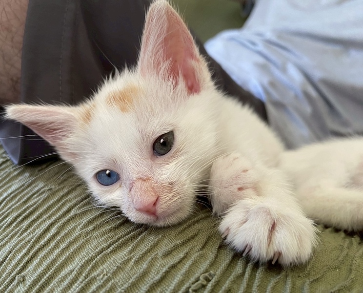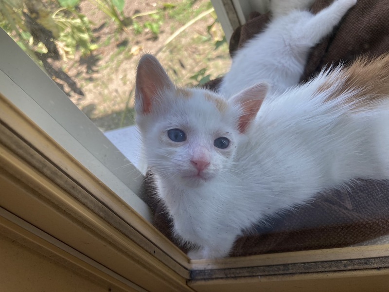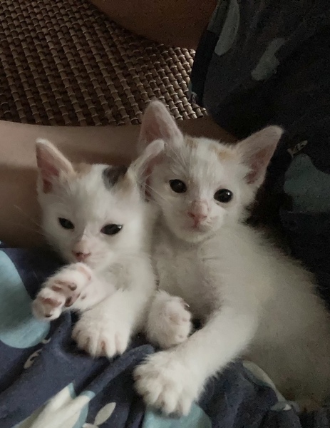| 特徴(性格など) | 白の多い三毛でオッドアイ。かわいい人懐っこい子です。 | ||