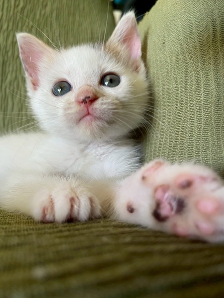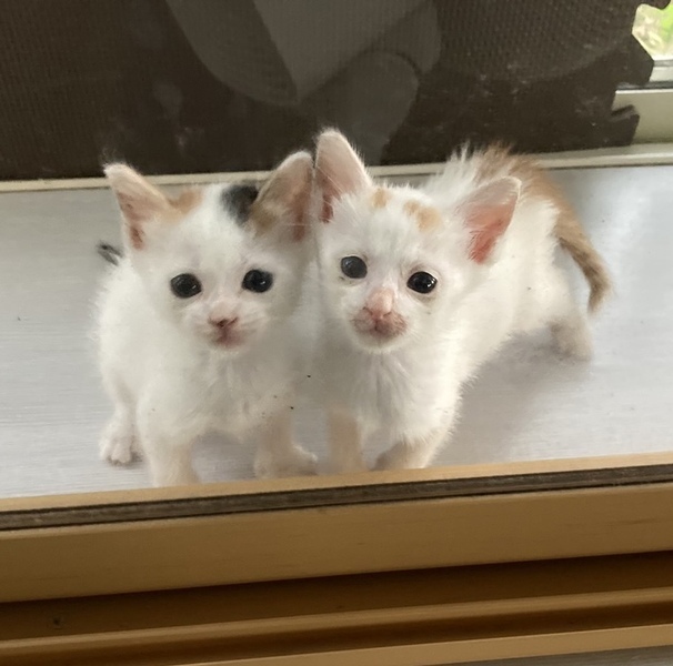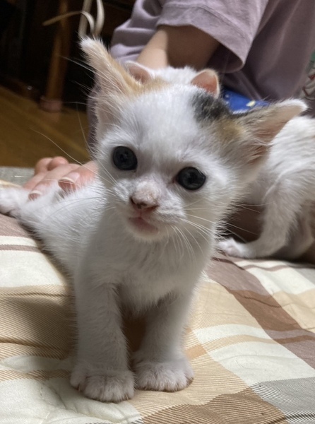| 特徴(性格など) | 白の多い三毛で頭の模様がかわいい人懐っこい子です。最近トイレもちゃんと覚えました。 | ||