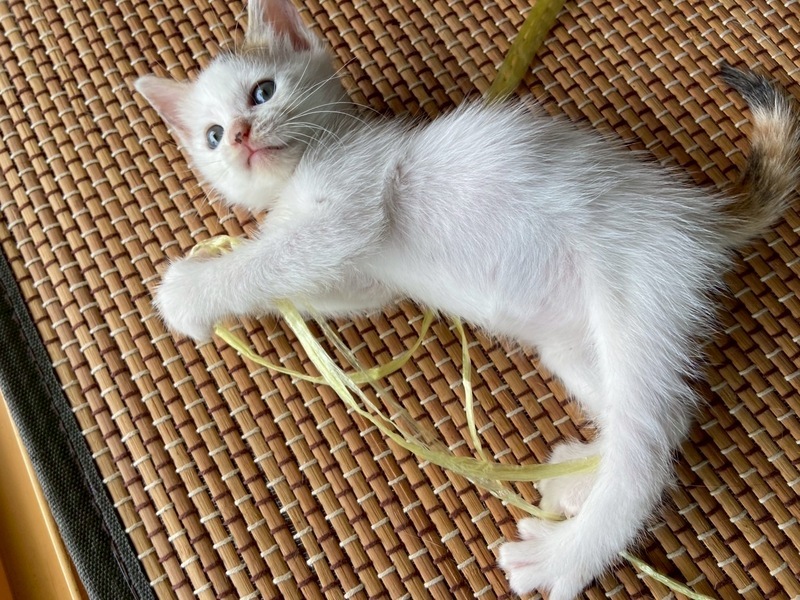 | 里親募集する理由 | 約2週間前にこの子ともう一匹を保護しました。動物病院は保護した翌日に行きました。その際にワクチン等の摂取はまだ小さすぎると先生に言われてやりませんでした。老猫の先住猫がおり、飼うことができないため里親さんを探しております。病院にてフロントラインスプレー済です。 | ||