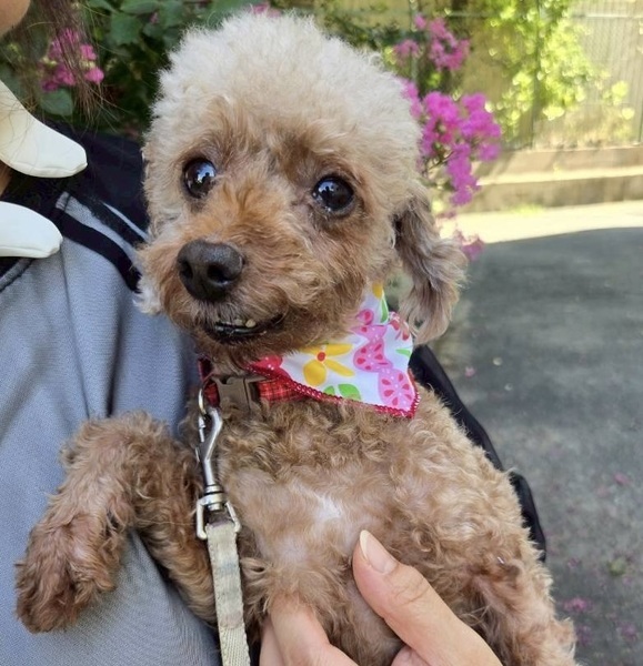 | 特徴(性格など) | トイプードルのみかんちゃん。 現在の体重は2.8kgです。 人懐っこく、他のわんちゃんとも仲良くできる 優しい女の子です。 初めての人の膝にも乗ってきてくれます^^ 診察の結果、尻尾が骨折した状態で固まっており 左足の股関節が外れている状態とのことですが とても元気にしてくれていて生活に支障はなく、 お散歩もできます。 愛らしいみかんちゃんを温かく受け入れてくださる方を探しています。 当団体のホームページや他のサイトでも同時に募集を行っています。 少しでも気になられましたら、どうぞお早めにお問い合わせくださいね。 |