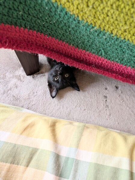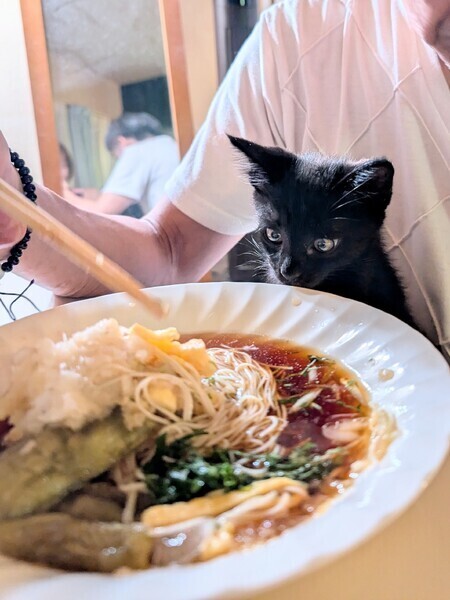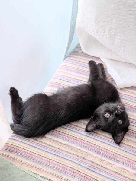 | 特徴(性格など) | 現在(9/27)で、生後約2か月のオスの黒猫です。 ・首元をよく見ると、白い毛が確認できます。 ・ご飯は、基本出されたものは、素直に何でも食べてくれます。 性格は、活発で陽気な子ですが、 人間にベタベタしたり、面倒見のいい我が家の先住猫にも依存しすぎない、、 非常に安定感のある子です。 難点は、咬み癖があることです。子猫なら、多少はあって仕方ないと思いますが、 力加減が、強めの子です。 本気咬みや、威嚇する咬みではなく、遊びの延長なので、 かまい過ぎず、叱らず、見守ってやれば治まって行くのではと思います。 見た目が、犬種のミニチュアピンシャーに似ていますが、 投げたボールを咥えて持ってくるので、ちょっとワンちゃんを飼っている気にもなれます。 |