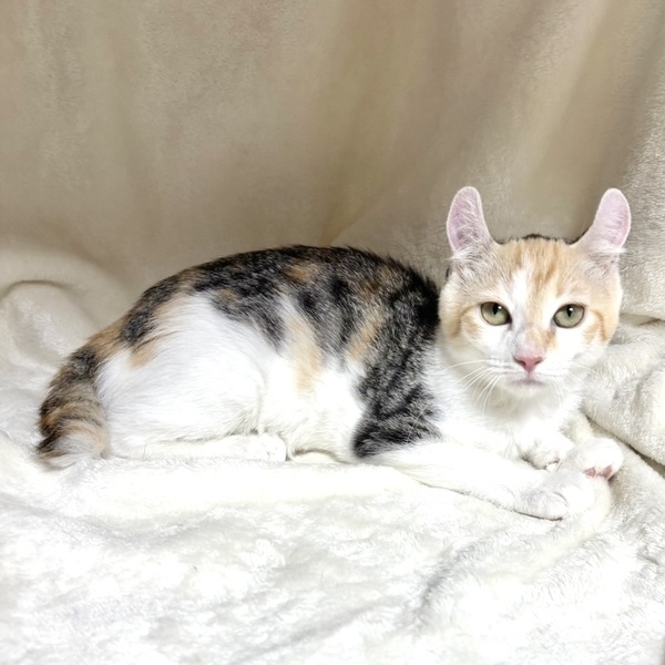 | 特徴(性格など) | 【仮名】リリィちゃん 【性格】お耳がクルリンなリリィちゃん☆ ママがアメリカンカールなので兄妹みんなお耳がカールしています。 お目目がクリクリで女の子らしいのですが、顔は茶白で体は三毛、 頭の模様がかなりのパッツン前髪の個性的な柄です! 少しおっとりさんでまだ人馴れ訓練中ですが 甘えん坊になりそうな予感♪ 一緒に過ごしている兄妹や同世代にゃんこと ペアで迎えると安心して頂けると思います♪ ※1ピキ譲渡応相談 |