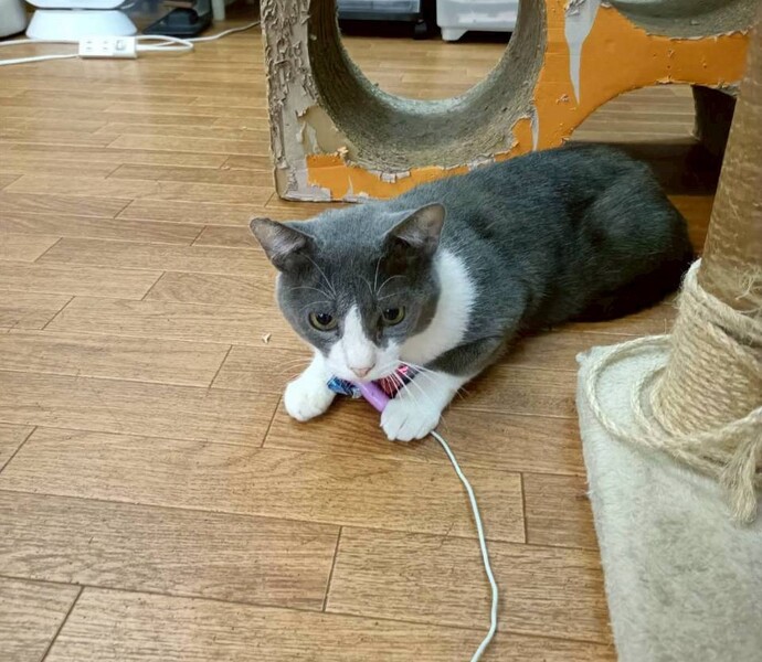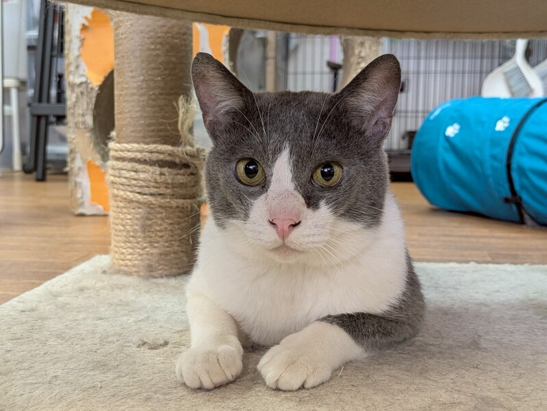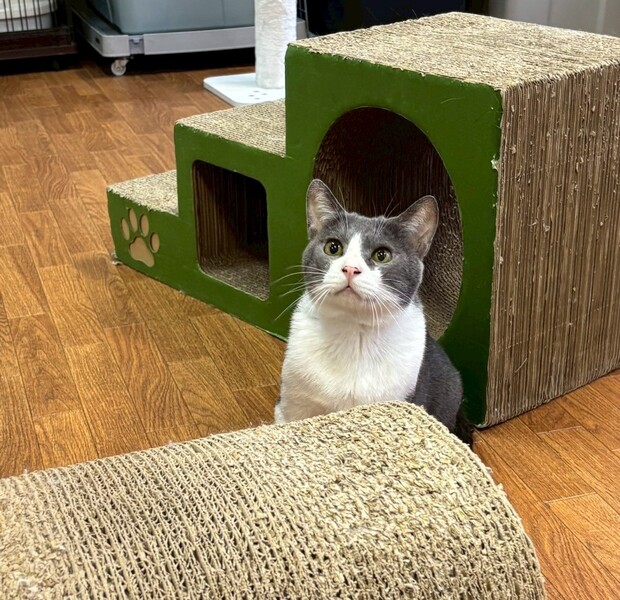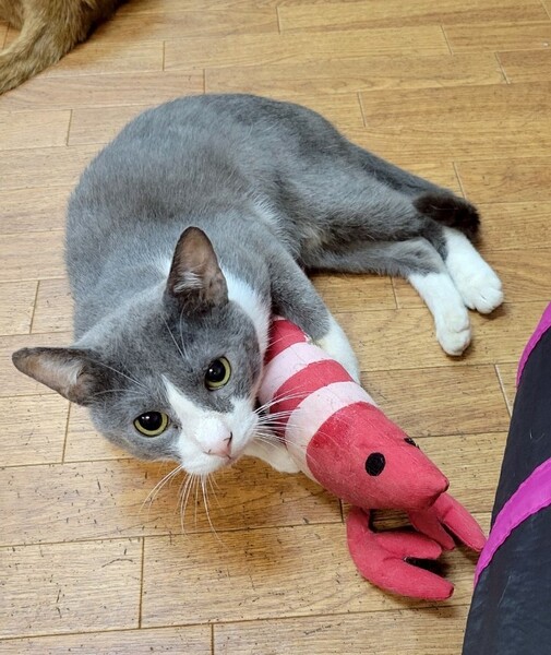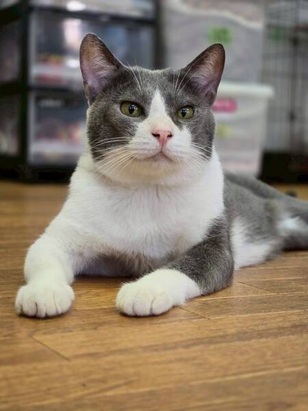 | 特徴(性格など) | 2022.10.15生まれ(推定) 毛色:グレー白 クリっとしたおめめが印象的なグレー×白のハチワレボーイ。 食いしん坊さんなので、ゴハン前はスリスリしてアピール全開!! ですが撫でられるのはお好きじゃないようで、パシパシッとしてきます笑 このツンデレ具合を愛してくださる里親様との出会い、待ってます!! |