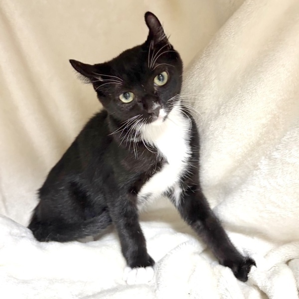 | 特徴(性格など) | 【仮名】ダンディくん 【性格】お耳がややカールのダンディくん☆ タキシード柄にソックス柄&お口の模様も個性的で 黒白猫が好きな方にはかなり魅力的です! 少しシャイで、まだまだ人馴れ訓練中ですが、 ナデナデは好きなのでオモチャで遊んだり 胃袋つかんだり コミュニケーションをとって頂ければ甘えん坊に変貌するかも? 一緒に過ごしている兄妹や同世代にゃんことペアで迎えると 安心して頂けると思います♪ ※1ピキ譲渡応相談 |