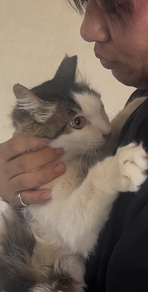| 特徴(性格など) | 長毛キジ白な皐月ちゃん。エイズキャリアです。 人間にはまだ怖がりで臆病でシャイですが、他猫とはトラブルなく子猫の面倒を見るくらい、協調性ある子です。 |