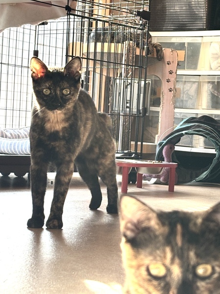 | 特徴(性格など) | 赤さび柄の大人しい子。賢く慎重。おもちゃ、おやつ大好きです。なかなか触らせてくれませんが人間には興味あります。手からおやつは食べます。 | ||