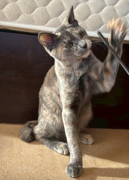| 特徴(性格など) | 灰サビ柄の賢くしっかり者のこはくとう。怖がりな感じは、慎重だから。おもちゃ遊びが好きで活発な1面もあります。惹き付けられる瞳です。 | ||