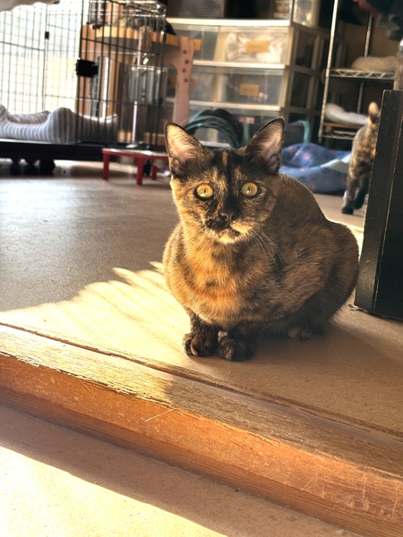 | 特徴(性格など) | サビ柄の大人しく見せといてなかなかやる子。長めのしっぽの先は鍵になっています。胸の模様が面白いです。 意外と6匹のきょうだいをまとめていたかもしれません。よく食べよく遊びスラーっとしたスタイル。 まだ人馴れバツグン!とは行きませんが、おもちゃやおやつに夢中になりすぎて触られても気づいてませんし、抱いたら固まります。 幸せのかぎしっぽです。 |