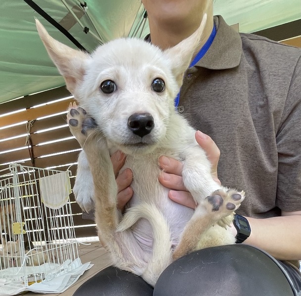 | 特徴(性格など) | お耳が大きくて、お鼻が真っ黒なイケメンのワンコです。 保護当初は怖がる様子もありましたが、現在はちょこちょこ寄ってきます。 兄妹と元気いっぱい遊んでいます。 健康面は特に問題はありません 5種ワクチン済み ノミダニ駆除済み 健康診断済み |