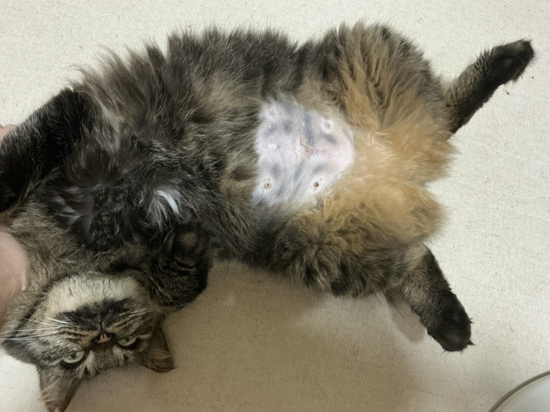 | 里親募集する理由 | 友人宅の駐車場で、TNRしようと捕獲し、翌朝動物病院に連れて行ったら、なんと獣医さんから「出産してるよ」と言われ、びっくり!。 捕獲夜から明け方に出産したようで、もちろん避妊手術は中止!(産後1か月後の10月に避妊手術済み) 赤ちゃんにお乳をあげる様子はなく、育児放棄か、まだ若く母性が育ってないのかもしれず、赤ちゃんはミルクボランティアさんにお願いし、このママ猫ちゃんは保護しましたが、我が家にはまだ里親募集している子もおり、キャパを超えないためにも里親募集するに至りました。 |