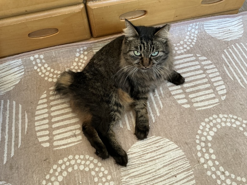 | 特徴(性格など) | お外にいたとは思えない程、穏やかで、人馴れしています。キジ柄、体格は小さめで、しっぽは短いです。食欲旺盛、スリスリの甘えんぼちゃんです。若くに出産したようで、これからはたくさん遊んで、幸せな猫生にしてあげてください。 | ||
