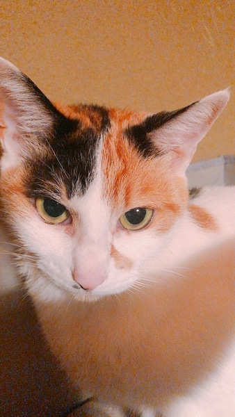 | 特徴(性格など) | お顔が美人さん、体が小さめの三毛猫さんです。 少し臆病で大人しい性格ですが、今まで暴れたり威嚇などした事が無いお利口さんです。 少食ですが健康には問題無さそうです。 |