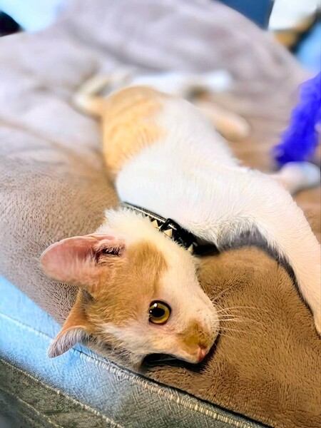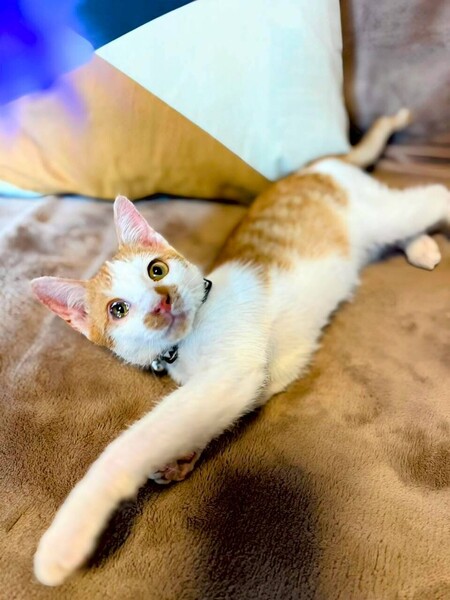 | 特徴(性格など) | 物怖じしない性格で ご飯大好き撫でられるの大好き甘えるの大好きな男の子です。 普通猫さんが大の苦手なはずの病院も 全く暴れず、抱っこしていただけで注射も爪切りもできました。 点眼も点耳もへっちゃらという超優秀な子猫さんです。 さらには、先住の犬たちにも物怖じせず。 積極的に近寄って体を擦り寄せて、飛びついたり遊んだりと、 犬の群れに入って行きます。 猫さんと仲良くできる犬のいるお家に向いている子かもしれません。 |