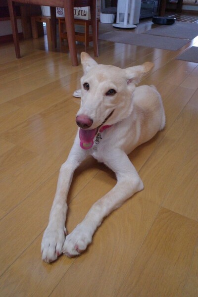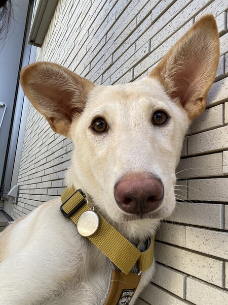 | 特徴(性格など) | 最初はビクビクしていたものの 慎重な部分はあるけれど好奇心が強いので人馴れは着実に進んでいます。 人の話をよく聞いていて、何かこちらに話しかける様にゴニャゴニャ喋るおしゃべり女子です。 最初唸っているのかと思い、驚きましたが多分本犬はおしゃべりのつもり。 お散歩は大好きで、最初拒否していたハーネスもいまではルンルンで付けさせてくれる様になり、何より散歩を楽しみにしています。 すれ違う人の事は警戒します。 まだまだ子犬らしく毎日暇さえあればソファの上で音のなるおもちゃをピーパー言わせたりボールを追いかけたりして遊んでおります。 先住犬がワンプロ好きじゃないのでイマイチ遊んではおりませんがワンプロが好きな先住犬なら面白おかしく遊び倒せるかなと思います。 そして驚くべきことに完全外派になってしまいがちな野犬の子ですがトイレは何故か室内派。 トイレトレーニングも進んでいます。 抱っこもビビリながらも固まってくれて、させてくれます。 好きではないですが・・・ 初めての場所でも、パニックになることなく ゆったり落ち着いて過ごせます。 非常に心が安定している子なのかなと思います。 彼女の最大の長所です。 そんな安定感がある彼女ですので 夜はケージで1人寝ることが出来、 朝だよ~とケージから出すと、トコトコトイレに向かってササッと用を足します。 サイズの問題さえクリアすれば、集合住宅向きの子かもしれません。 |