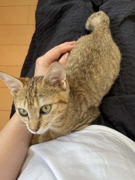 | 特徴(性格など) | 麦わら猫ちゃんメス 人懐っこくて抱っこも大好きです。 猫じゃらしやおもちゃで元気に遊びます♪ ノミダニ駆除済み 検便済み駆虫済み ワクチン接種済み ウイルス検査(-)陰性 トイレしつけ済み 大きなお目々とポンポンみたいなボブテイルがチャームポイントです♡ |