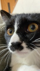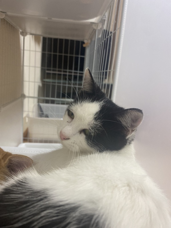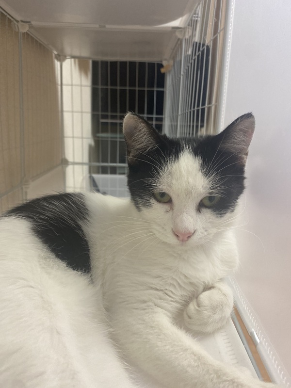 | 特徴(性格など) | 白黒の困り顔の女の子です! とても大人しくて、おもちゃで遊ぶのが大好きです! |