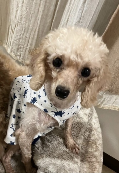 | 特徴(性格など) | 【仮名】ロコ 【性別】女の子 【犬種】トイプードル 【生年月日】不明推定4歳 【体重】2.26kg 【トイレ】練習中です。 【お散歩】練習中です。 【留守番】できます。 【トリミング】1〜2ヶ月に1回程度のトリミング 【健康状態】左パテラ1、乳腺腫瘍あり全線摘出済み。身体に少し湿疹が出ています。 シャンプーで様子見。 【お薬】なし 【詳細】少し人見知りがありますが、しばらくすると慣れてスリスリしながら寄ってきて甘えてくれます。とても可愛いです。他のわんちゃんとは元気によく遊びます。ご飯は毎回残さずよく食べます。食いしん坊さんです。全体的にはおとなしく、穏やかな性格です。 少しずつ距離を縮めながら仲良くなっていく時間がとても愛おしい子です。 |