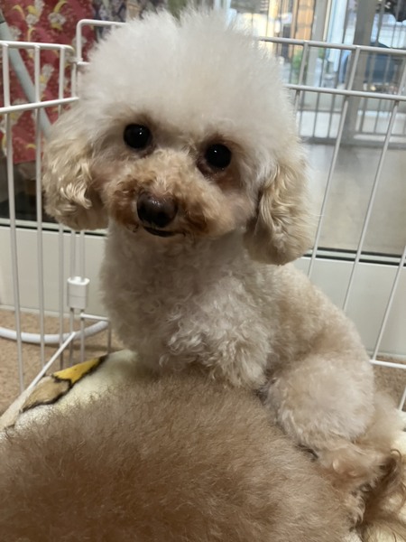 | 特徴(性格など) | 【仮名】ロコ 【性別】女の子 【犬種】トイプードル 【生年月日】不明 推定4歳 【体重】2.6kg 【トイレ】出来ます。 【お散歩】出来ます。 【留守番】サークル、クレート、フリーで出来ます。 【トリミング】1〜2ヶ月に1回程度のトリミング 【健康状態】左パテラ1、乳腺腫瘍があった為全線摘出しています。 【お薬】なし 【詳細】少し人見知りがありますが、しばらくすると慣れてスリスリしながら寄ってきて甘えてくれます。とても可愛いです。他のわんちゃんとは元気によく遊びます。ご飯は毎回残さずよく食べてくれます。食いしん坊さんです。全体的にはおとなしく、穏やかな性格です。 どのわんちゃんとも仲良く出来る優しい子です。 保護当初湿疹がありましたが、綺麗に治りました。 おトイレも最初は全然出来なかったのですが、今ではちゃんとペットシートでしてくれるようになりました。おトイレをした後は褒めて〜と寄って来てくれます。かしこくて可愛い子です。 |