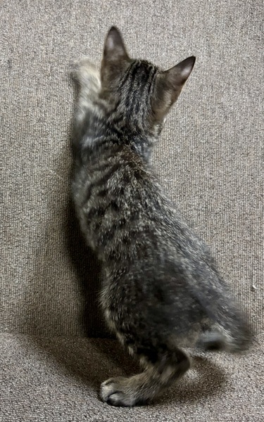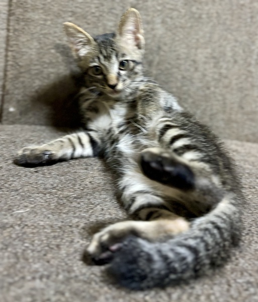 | 特徴(性格など) | キジトラ シッポ長いです 食欲旺盛、トイレも覚えました 元気に飛び回っています |