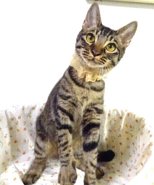 | 特徴(性格など) | 仮名: 莉音(りおん)くん、 オス 毛色: キジトラ、尻尾長い 性格: 母猫が餌やりにも懐いていない人見知りの猫ですから、子猫も全員がビビりで保護時は小さいながら激しく威嚇していました。 今もビビりの面はあり、大勢の人は苦手なので譲渡会などでは、早く終わらないかなあという感じで過ごしています。 威嚇なく抱っこ出来、爪切り、薬は大丈夫です。 抱っこすると喉ゴロゴロですが、早く降りて遊びに行きたいという感じです。 兄妹の杏音ちゃんとは仲良しでよくプロレスして遊んでいますので、一緒のご縁があると嬉しいです。 4兄妹で育ちましたので、猫社会の学習は出来ていると思います。 お届けは千葉県内で千葉市幕張から車で1時間圏内でお願い致します。 検便済 駆虫済 ワクチン済 去勢手術済 猫エイズ・白血病ウィルス検査はともに陰性です |
