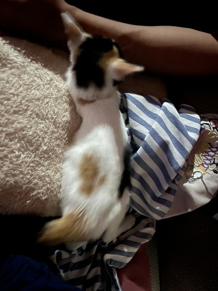 | 特徴(性格など) | 茶色 白 黒ミックスの三毛猫ちゃん 甘えん坊さん |