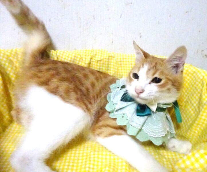 | 特徴(性格など) | 仮名: ラスクくん、オス 毛色: 茶白 性格: 保護時から怖がりで、奥の方に引きこもり、人がいるとご飯も食べられない位でした。 今もビビりですが、人は嫌いではなく、むしろ好きなので側に行きたいのですが、捕まえようと手が出てくるのは怖いようです。 抱っこしてしまえば甘えてくるのですが。 ケージに1匹だけでいるので、時々は同じ月齢の子と一緒に遊ばせています。 すぐにプロレスを始めたりしますので、うまく付き合えると思いますが、大きい大人猫は少し怖いようで、近づけません。 優しい先住猫ちゃんであれば大丈夫かと思います。 怖がりなので、ゆっくり時間をかけて馴らしてくださるご家庭を希望しています。 お届けは千葉県内で千葉市幕張から車で1時間位でお願い致します。 検便済 駆虫済 ワクチン済 去勢手術済 猫エイズ・白血病ウィルス検査はともに陰性です |