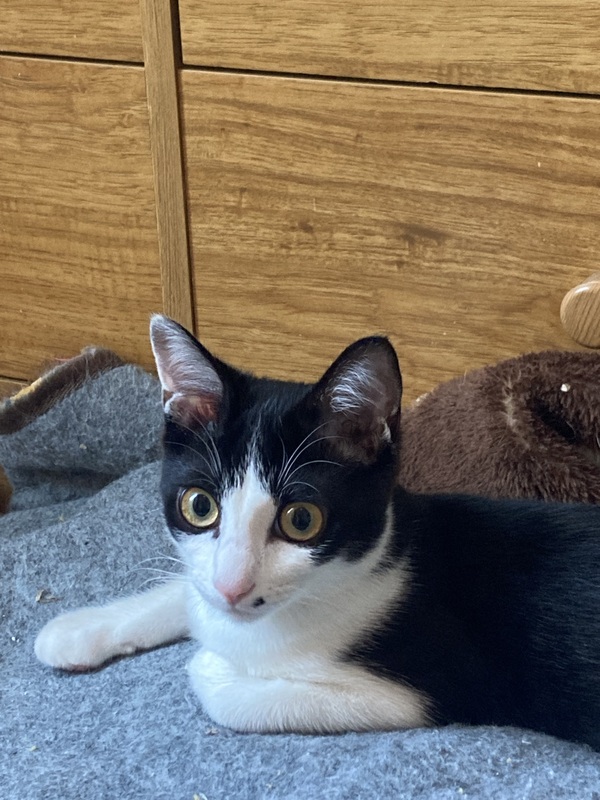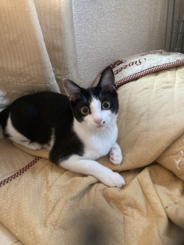 | 特徴(性格など) | 南野ホクロがポツンとついた ハチワレの3〜4ヶ月の女の子です。 性格は、結構ビビリで初めの方は 固まってしまいます。 1、2週間もすれば次第に慣れていき、大好きな焼きカツオも手から食べてくれると思います。 コロンと近くで寝っ転がり撫でてくれと催促もしてきますよ。 |