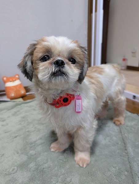 | 特徴(性格など) | 名前(仮):ヒラノ 性別:メス 犬種:シーズー 毛色:ホワイト&ゴールド 年齢: 2022/12/6生まれ 体重: 性格:臆病ですが慣れれば甘えんになりそうです。 トイレ: シート認識あり、時々マットにします 散歩: まだ開始していません 日常の様子:観察中ですが、まだ人に対して臆病で近くには来てくれますが触ろうすると逃げます。撫でたりできますが固まっています。これから人馴れして来れば甘えん坊になりそうです。犬猫とは問題なく過ごせます。 お手入れ:毎月のトリミング・毎日のブラッシング・歯磨き・耳掃除・涙やけケアなど ※トリミング犬種なので、必ず毎月1回サロンでトリミングをして可愛く清潔にして頂ける方、それだけの経済的余裕がある方を希望します フード: ミシュワン 健康状態 フィラリア:陰性(-) ワクチン:6種混合接種済み マイクロチップ :装着済み 避妊・去勢:手術済み その他:触診・聴診・血液検査・検便、異常なし、駆虫薬投与・ノミダニ駆除済み・スケーリング済み 特記所見★ 声帯が切除されている為、将来気管の病気になる可能性があります。 |