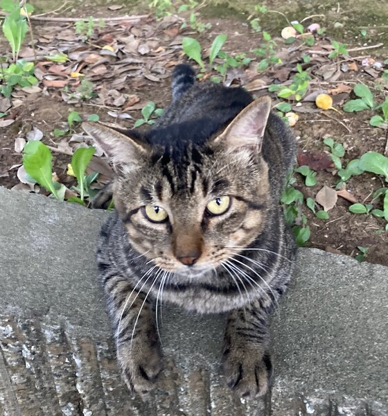 | 特徴(性格など) | 仮名は『きー』ちゃん。少し前までは遠くから眺めているだけでしたが、今ではゴロンゴロンとお腹を見せて、全身で甘えまくっています。過酷な野良ちゃんの世界で生きているとは思えない程、甘えん坊でやさしい性格の男の子です。成猫の大きさなので、年齢は不詳ですが、若い子だと思います。野良ちゃんとして頑張って生きているきーちゃんが、大好きな人と暮らせますように。きーちゃんのまっすぐな気持ちに応えてくれる里親さんを探しています。きーちゃんへのお問い合わせを心よりお待ちしています。 | ||