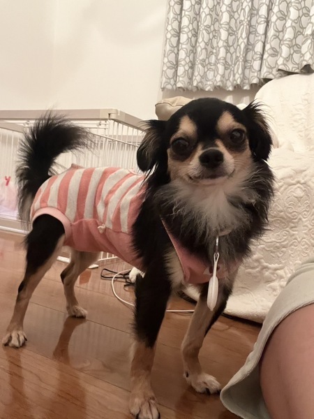| 特徴(性格など) | 名前(仮): ヒトデ 性別 : メス 犬種 : チワワ 毛色:ブラックタン 年齢 :2021年1月14日生まれ 体重:3.4キロ 保護経緯:ブリーダーからの保護 性格:控えめで大人しいですが甘えん坊で、撫でるとすぐにお腹を見せます。 トイレ: シート認識ありですが興奮時はその場ですることもあります。 散歩: 急に止まったり走り出したり挙動不審な動きをします。家の近くに来るとスムーズに歩きます。 日常の様子 : 普段は人の近くのベッドで寝ています。常に人にくっついていたい子でずっと着いてきます。 お手入れ:毎月のトリミング・毎日のブラッシング・歯磨き・耳掃除・涙やけケアなど ※トリミング犬種ではありませんのでサマーカットのように被毛を短く切ることはしないでください フード: ミシュワンにココグルメトッピング 保護日: 2025年9月22日 健康状態 フィラリア:陰性 ワクチン:6種混合接種済み マイクロチップ:装着済み 避妊・去勢:避妊済み その他:触診・聴診・血液検査・検便、異常なし、駆虫薬投与・ノミダニ駆除済み・スケーリング済み 特記所見★声帯が切除されている為、将来気管の病気になる可能性があります。 |