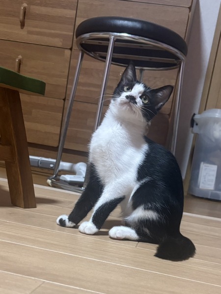 | 特徴(性格など) | 2025.6.15生まれ(推定) 毛色:白黒 おひげ模様がとってもチャーミングな男の子♪ 兄弟の中でも一番人馴れしていて顎の下を撫でられた時のうっとり顔がたまらなく可愛いいです。 おもちゃで遊ぶのも大好き!! ピョンピョン跳ねて元気いっぱい。 お腹が空くと、すごく小さな声で訴えてくるのが可愛いです。 現在、兄妹3匹で預かりボランティア宅で生活しています。 |