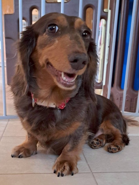 | 特徴(性格など) | ■特徴(仮の名前)キナコ Mダックス♀体重7,1キロ推定6歳 ■性格・暮らし ・人懐こく甘えん坊です ・お散歩は練習中です ・トイレシートの認識があります ・他犬と問題ありません ■今までに行った医療行為 ・混合ワクチン接種 ・フィラリア検査(-) ・マイクロチップ装着 ・避妊手術 ・耳ダニ検査(-) |