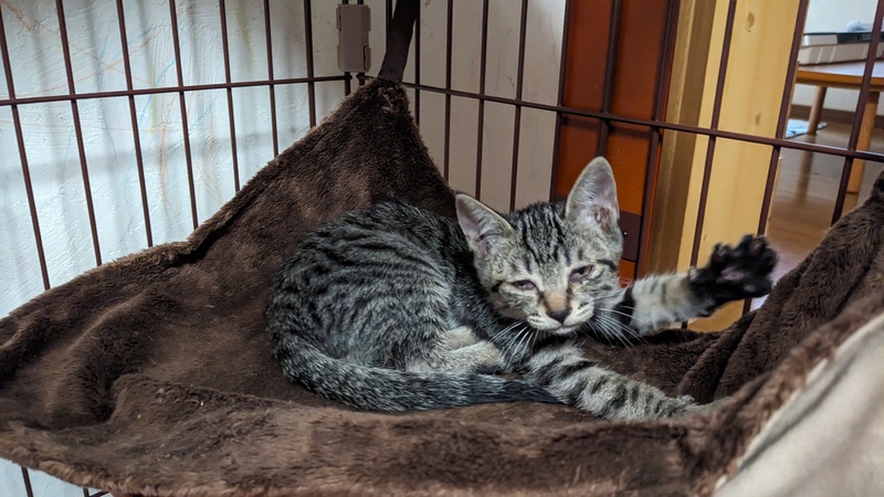 | 特徴(性格など) | サバトラ柄の元気な男の子です。 よく食べてよく遊んでいます |