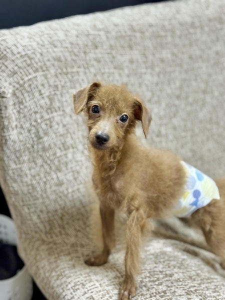 | 特徴(性格など) | 名前(仮):エスバン 性別:オス 犬種:トイプードル 毛色:レッド 年齢: 2025年5月27日生まれ 体重: 2キロ 保護経緯: トイプードル専門ブリーダーからの保護 性格:天真爛漫、人が大好きです。 トイレ: ほぼシートで排泄します。ウンチはすぐ片付けないと遊んでしまいます。 散歩: 上手に人に付いて歩けます。 日常の様子:ケージに入れると吠え続けるのでフリーで生活しています。人が大好きで誰にでもくっついてきます。 お手入れ:毎月のトリミング・毎日のブラッシング・歯磨き・耳掃除・涙やけケアなど ※トリミング犬種なので、必ず毎月1回サロンでトリミングをして可愛く清潔にして頂ける方、それだけの経済的余裕がある方を希望します フード: フィッシュ4 保護日: 2025/9/25 健康状態 フィラリア:陰性 ワクチン:6種混合ワクチン接種済み マイクロチップ:装着済み 避妊・去勢:去勢手術済み その他:触診・聴診・血液検査・検便、異常なし、駆虫薬投与・ノミダニ駆除済み。 特記所見★毛が薄いです。 |