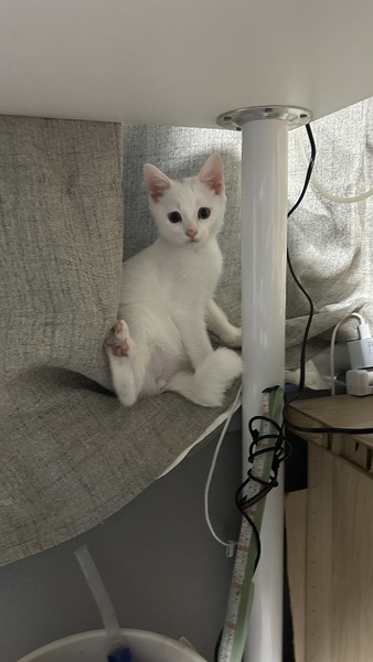 | 特徴(性格など) | 親子ともに白猫です 子猫は頭のてっぺん柄黒いですが消えると予想しています |