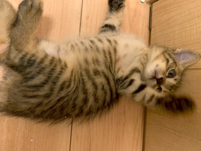 | 特徴(性格など) | 最初は1番の怖がりさんでしたが、今ではすっかり甘えん坊さんに♡ ちょっと赤っぽいキジトラです♡ 健康状態は良好です。 エイズ 陰性 白血病 陰性 |
