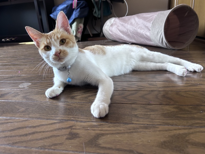 | 特徴(性格など) | 保護当時から信じられないくらい人慣れしています。かなり忙しなく身体を擦り付けてくるので、犬のような激しい愛情表現をお求めの方におすすめです。お子様が小さくても大丈夫だと思います。 成猫にしては毛並みも若く、歯も綺麗なので1歳なりたてくらいと推測されます。 ありえないくらい元気でじっとしていません。おもちゃで激しく遊びます。ちゅーるを噛むタイプで、キャットフードはゼリータイプは好きではないようです。 |