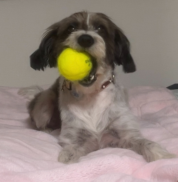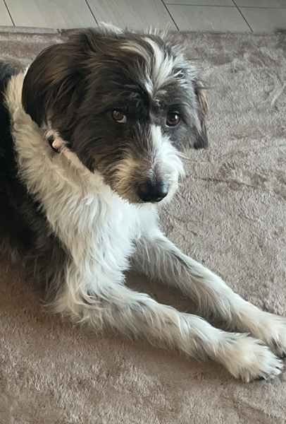 特徴(性格など) | 白黒模様のヨーキーとイングリッシュシープドッグの中型犬です。 優しくて人懐っこく寂しがりな子です ボール遊び、お散歩が大好きです。 |