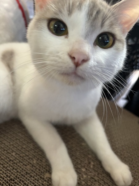 | 特徴(性格など) | 色は白と茶色っぽい色です。 性格はビビりなんですけど慣れたらすごい甘えてきます。 |