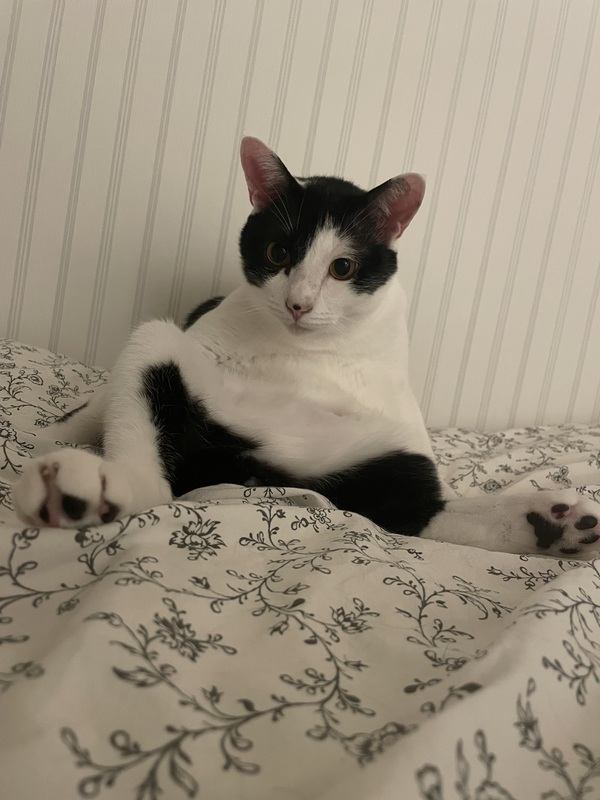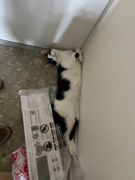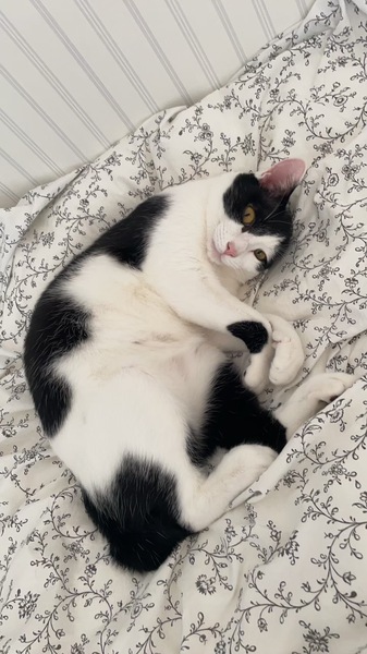 | 特徴(性格など) | ハチワレ、鍵尻尾、黒城 甘えん坊、遊び大好き、人懐こい 食いしん坊、お尻トントン好き |