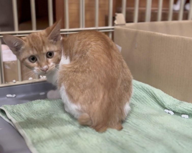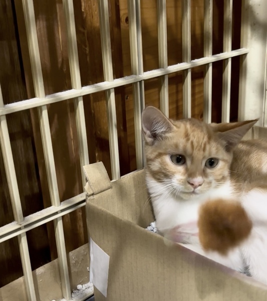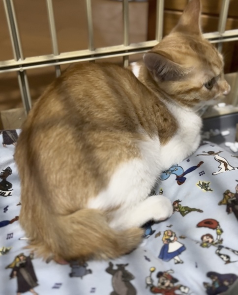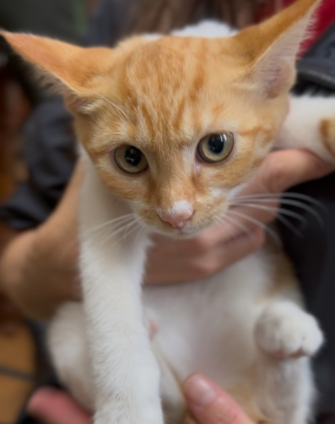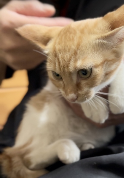 | 特徴(性格など) | 10月14日に室内に保護をしたばかりで初日は緊張していましたが、大人しい性格で抱っこもナデナデもできる、とても性格の良い女の子になりました♡ 問題なく人馴れは進んでいるので甘えん坊になりそうです! 毛並みはフワフワ、白い毛も汚れなどなくとても綺麗な状態です。尻尾はピカチュウのようなギザギザ尻尾の短めです。(写真2枚目をご覧ください) 素敵な里親さんに巡り会えますように…ପ(⑅ˊᵕˋ⑅)ଓ |