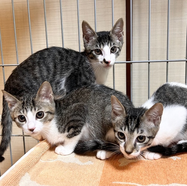 | 里親募集する理由 | 別荘地たいから子猫の鳴き声がすると通報あり、行ってみると三匹いました。捨てられたと思います。 | ||