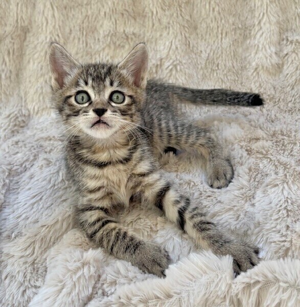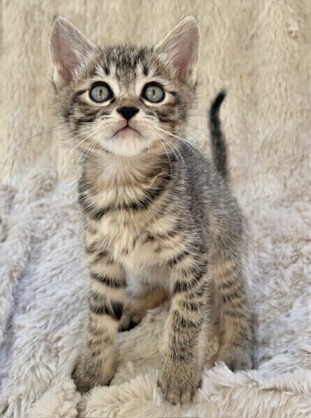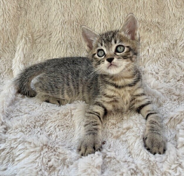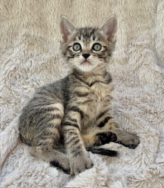 | 特徴(性格など) | 【仮名】ポッキーくん 【性格】ちんまりキジトラのポッキーくん♪ パヤ毛がカワイイ定番にゃんこです! このコの甘え方は可愛いの一言です! ヨコになった瞬間にお腹にいるのが ビックリするくらい早いんです(笑) 日課の兄弟とのにゃんプロで スクスクと成長中の健康優良児♪ 兄弟のポポロンくんと力加減が合うので ペアでのお迎えを希望します♪ ※1ピキ譲渡不可 |