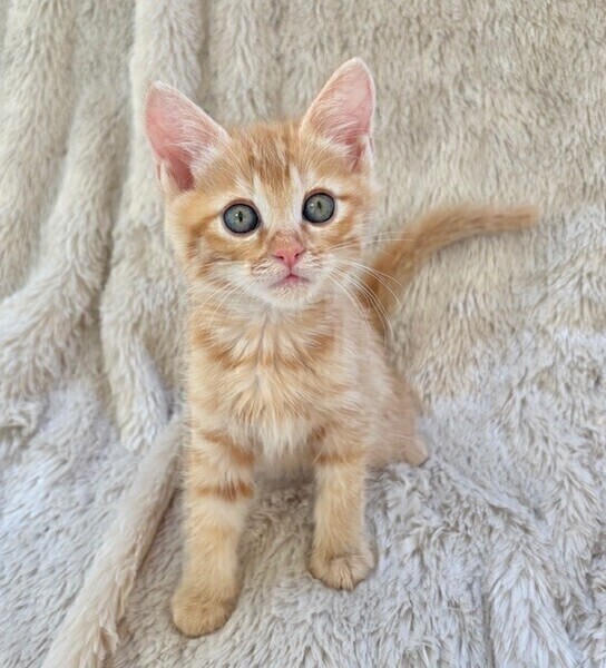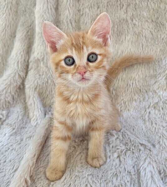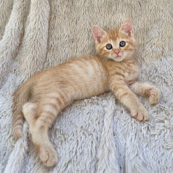 | 特徴(性格など) | 【仮名】ポポロンくん 【性格】みんな大好き茶トラのポポロンくん♪ 大きなブルーグリーンのおメメをもつ レジェンド級イケメンにゃんこです! 兄弟イチの甘えッコなので このコを迎えるには覚悟が必要(笑) こんな可愛いコに甘えられたら 何も出来なくなる事うけあいです! モチロンおもちゃ遊びも大好きです♪ 兄弟のポッキーくんと力加減が合うので ペアでのお迎えを希望します♪ ※1ピキ譲渡不可 |