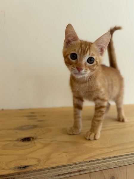 | 特徴(性格など) | 追記:現在ありがたい事にたくさんのお申し込みが来ております。 新規の募集は停止中です。ご了承ください。 好奇心旺盛な男の子どら焼き君です! とっても元気いっぱいで子猫らしい性格の男の子。 保護猫部屋では他の先輩ねこ達にとっても可愛がられています! 人間で言うと、可愛い後輩タイプでしょうか? ご飯が大好き。他の猫ちゃんも大好き。 子猫とも大人猫とも仲良くできるので、先住猫さんがいるお家でもすぐに馴染めそうです。 茶とらでしっぽがすらっと長いです。 とっても可愛いどら焼き君に是非会いにいらしてください! |